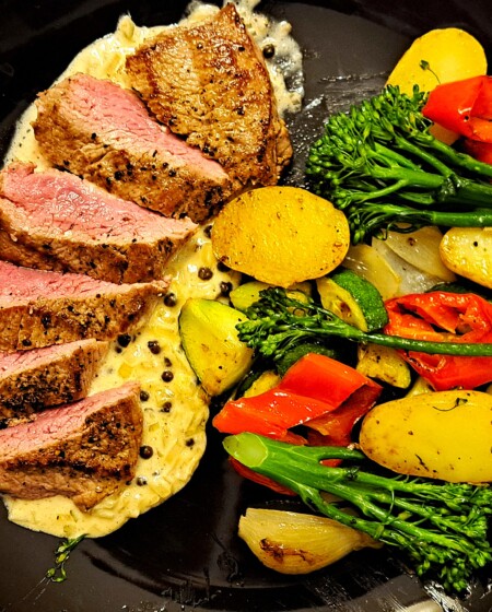Comber jagnięcy z sosie z zielonego pieprzu