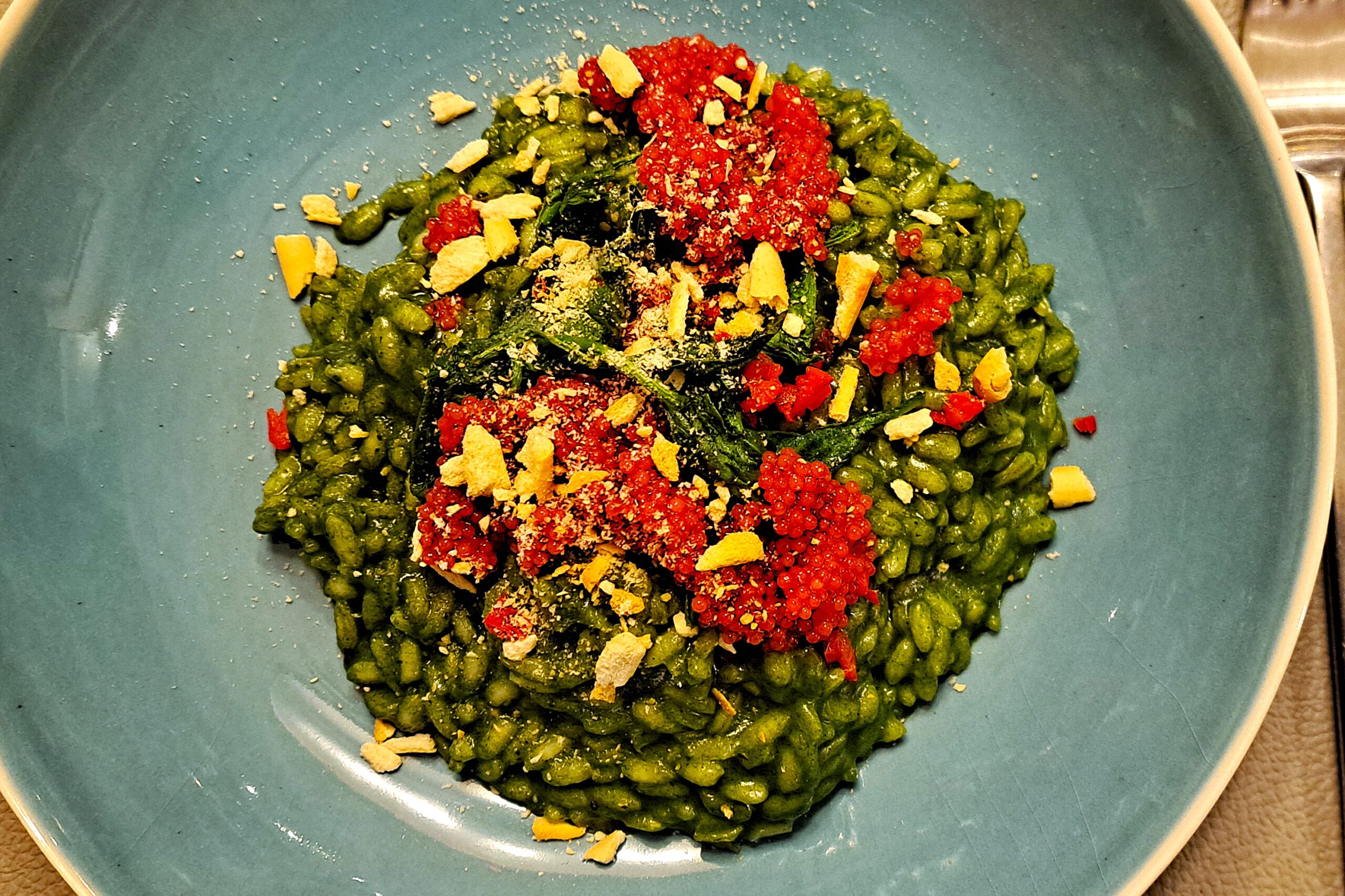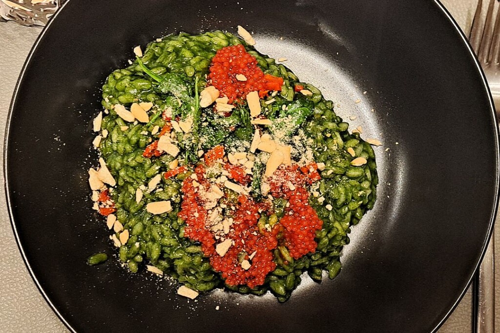 Szpinakowe risotto z ikrą