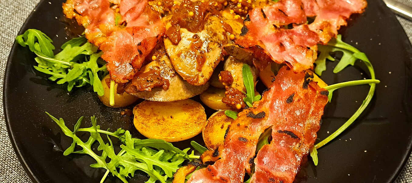 Wątróbki królicze z boczkiem i musztardowym sosem