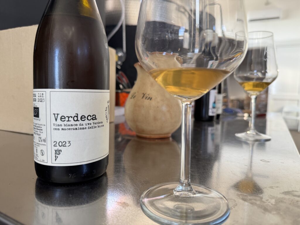 Zaczęliśmy od chyba najciekawszej białej odmiany południowej Apulii. Verdeca daje wina świeże, o często zaskakującej wręcz kwasowości. Szukajcie jej będąc w tym regionie, bo udaje się znacznie lepiej niż chardonnay (którego też w Apulii znajdziecie sporo). Nasze wino było macerowane przez 2-3 dni ze skórkami, a potem trafiło na krótki czas do stalowych zbiorników.