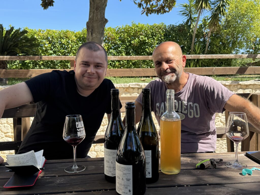 Zaczęliśmy od pet-nata powstałego z owoców montepulciano z 2021 rocznika. Aby wzbudzić drugą fermentację Enzo dopiero po roku dojrzewania w stalowych zbiornikach dodał do wina moszcz z 2022 roku. A po kolejnych 12 miesiącach usunął z butelek osad.