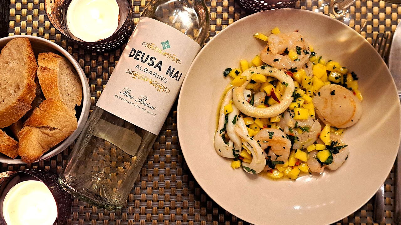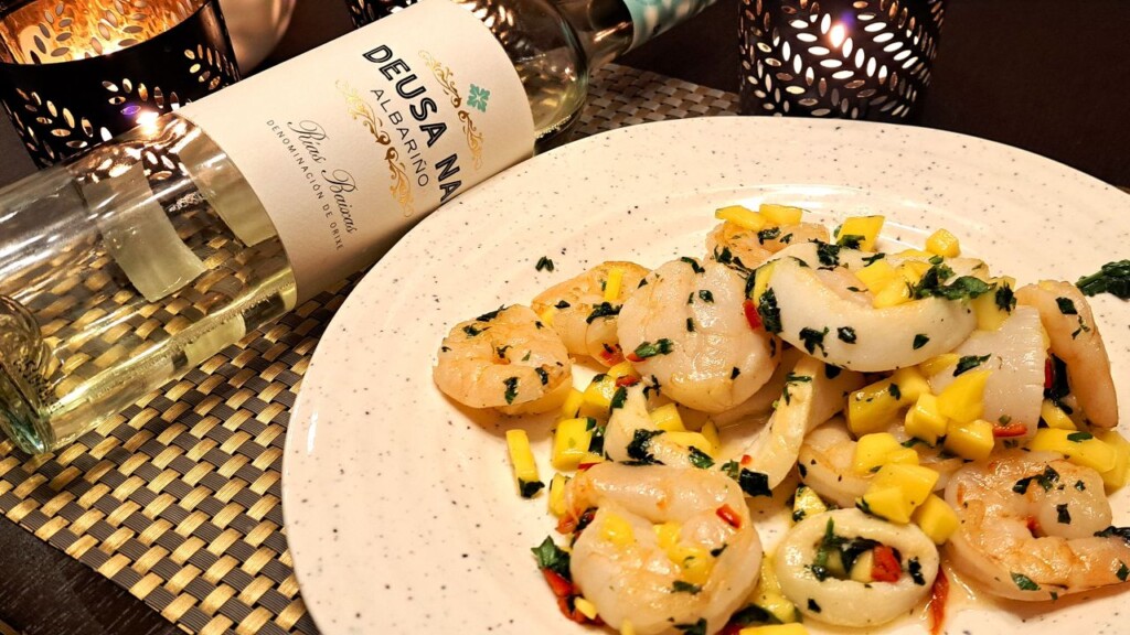 Tak jak obiecałem w poniedziałkowym wpisie opisującym 5 butelek albariño (Albariño – galicyjski flagowiec) dostarczam suplement – czyli recenzję ostatniej butelki z zestawu, wraz nowym przepisem na danie, które świetnie dopasowuje się do win z Rias Baixas. Przygotowałem owoce morza z salsą z mango, chili i kolendry. Coś co zaskakuje świeżością i głębią smaku a jest z drugiej strony bardzo sycące, efektowne i bardzo smaczne.