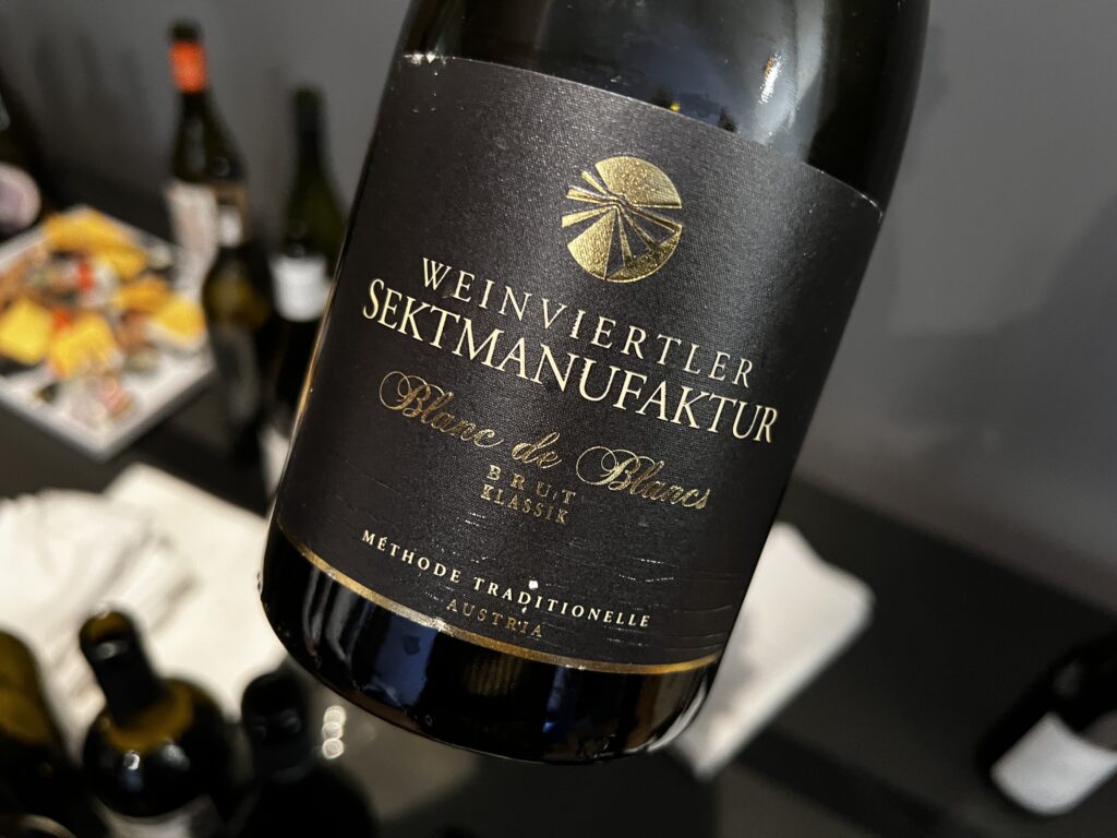 Weinviertel Sektmanufaktur to projekt prowadzony przez rodzinę Hugl w miasteczku Stützenhofen, bezpośrednio przy granicy z Czechami. Jak wskazuje nazwa, oczywiście specjalizuje się w winach musujących, a tutaj mieliśmy ich Blanc de Blancs w którego składzie znajdziemy równe proporcje grüner veltlinera i welschrieslinga. Cukier resztkowy jest na poziomie 3 g.