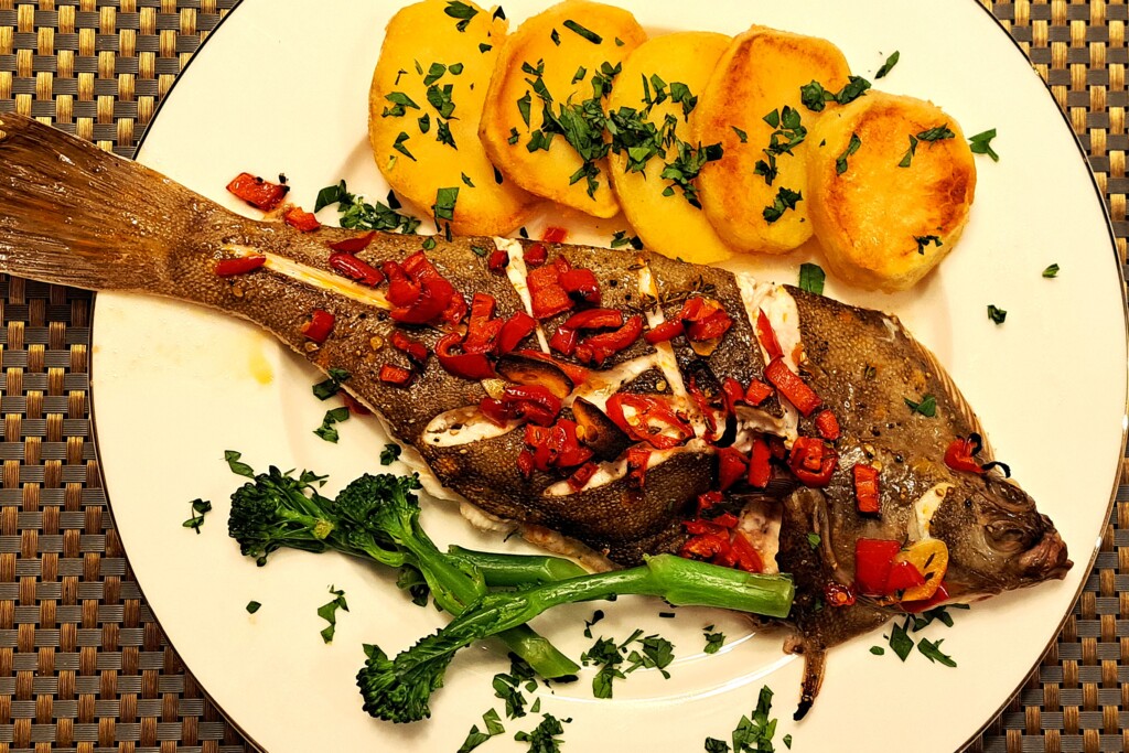 Gładzica, płastuga jest rybą przydenną, podobną do flądry – ją możecie też zamiennie wykorzystać. W tym przepisie jest traktowana cytryną i oliwą oraz solą i pieprzem, a także posypana przesmażoną słodką i ostrą świeżą papryką. Potem tylko 8 minut pod grillem w piecu i niebo w gębie. Pod warunkiem, że ryba jest świetnej jakości. Moja taka była!