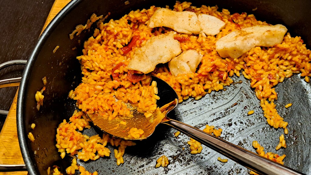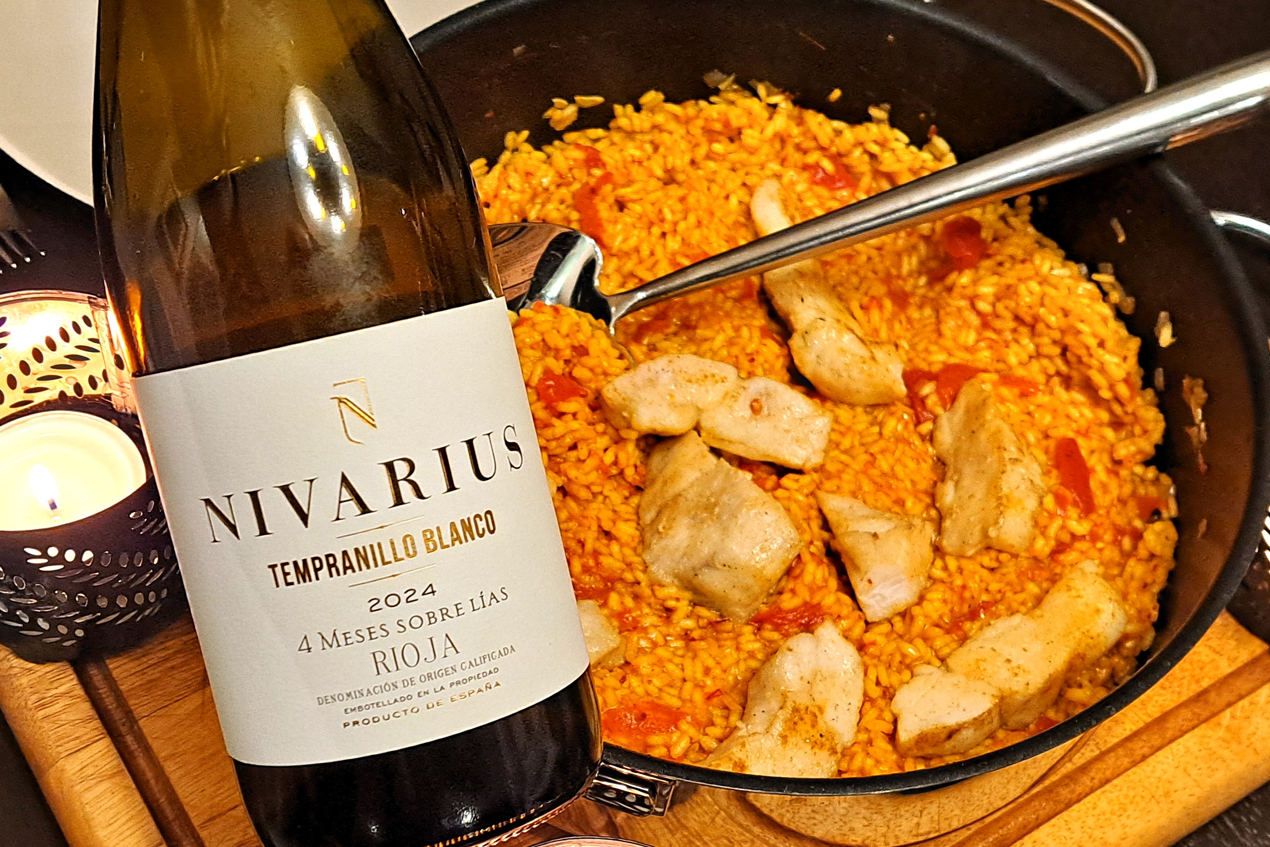 Paella z żabnicą oraz tempranillo blanco z Rioja