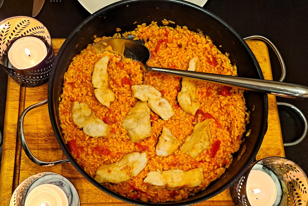 Przy przygotowaniu dań z ryżu w hiszpańskim stylu korzystamy z innych jego gatunków (Bomba, Senia) niż do risotto (Carnaroli, Arborio). Ryż do paelli nie uwalnia tyle skrobi i dlatego to danie jest suche oraz sypkie, a nie płynne. Bez problemów znajdziecie taki w supermarketach (Auchan) czy nawet dyskontach (Lidl). Kolejną różnicą pomiędzy tymi daniami jest to, że gotujemy ryż w całej porcji bulionu do momentu aż wchłonie cały płyn a nie dolewamy go partiami.